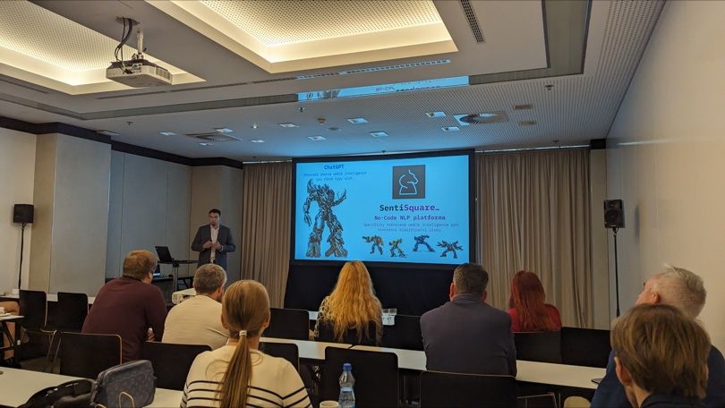 But this was not everything. In addition to the presentation on the main stage, we also conducted a workshop led by SentiSquare CEO, Tomas Brychcin. The topic was more than hot: SentiSquare No-Code NLP vs Generative AI (Chat GPT). At the workshop, we explained the differences between Chat GPT and our No-Code Platform and evaluated where it makes sense to use tailor-made NLP models instead of ready-made ones.